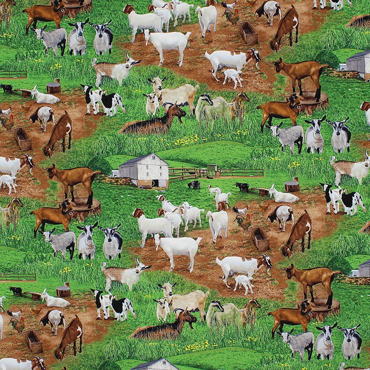 Goats in Pasture Print Fabric – (75)