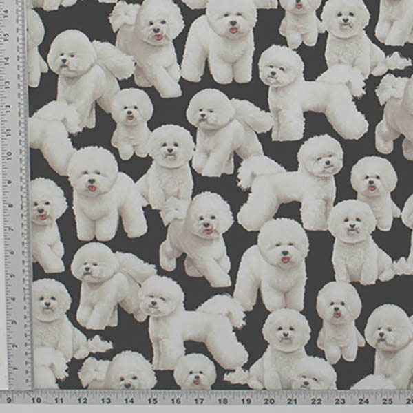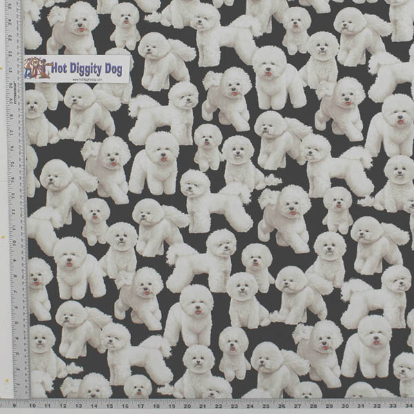 Bichon Frise standing and sitting packed together