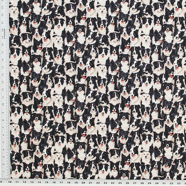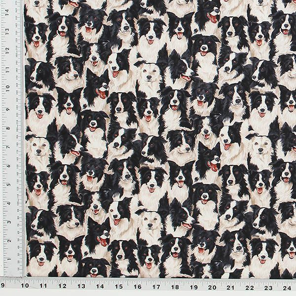Packed Border Collie Faces throughout a Premium All Cotton Fabric imported from Makower U.K.
