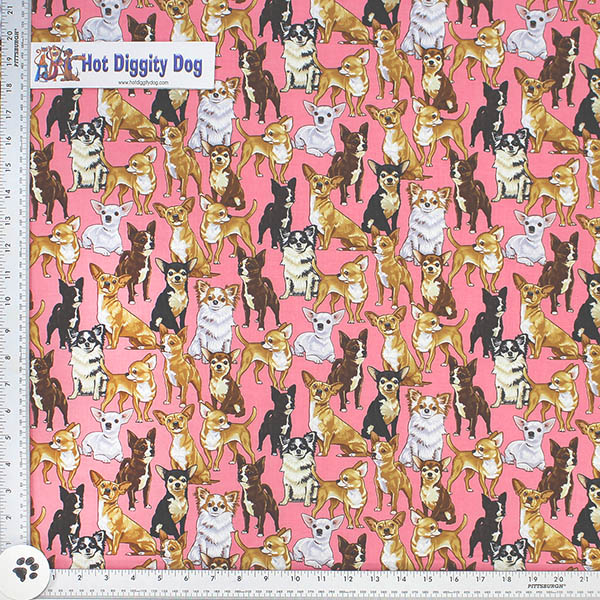 Chihuahuas Long and Short Coated, all coat colors Pink All Cotton Background/44″ wide. Other colors include white, browns, Greys, and Tans. by Timeless Treasures Fabrics