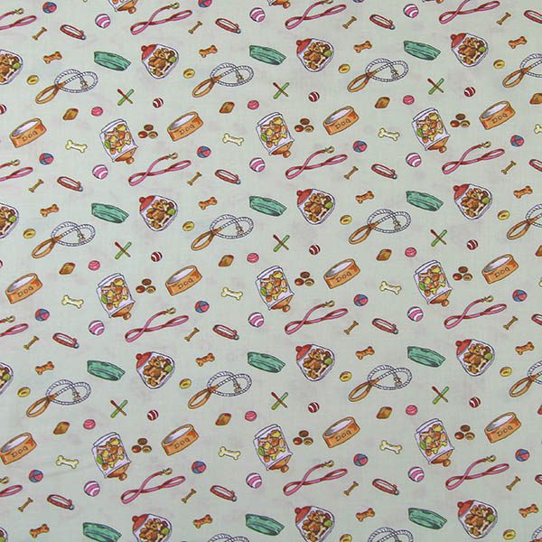 Dog Leash Fabric with Dog Bowls, Dog Treats,