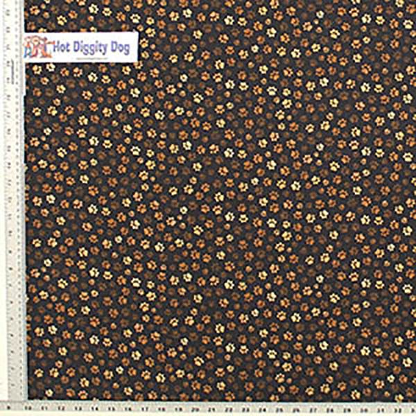 Dog Paws printed in varying shades of brown on black All Cotton Novelty Fabric 44 ” wide by Timeless Treasures