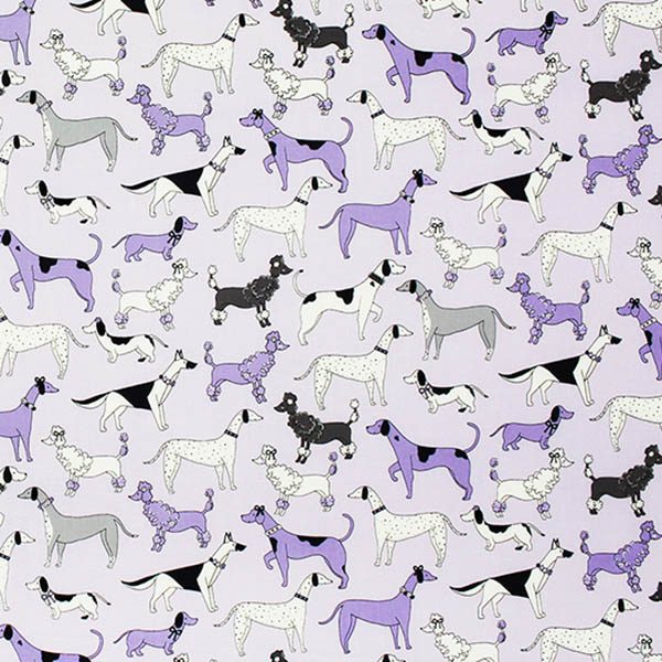 Dog Walk-Lilac Print Fabric by the yard. All Cotton/44″ wide/Michael Miller.