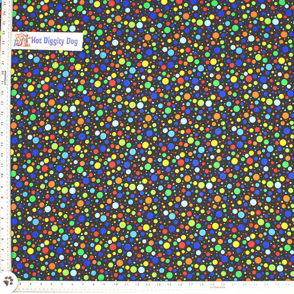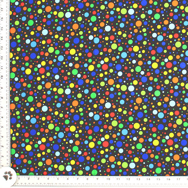 Multi Dots Flannelette Print Fabric has Primary Colored Dots in a soft flannel on a black background