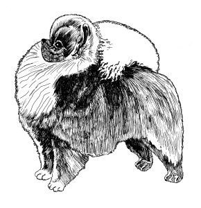 Pomeranian 3, Full Body Art design used for printing onto all cotton fabric with 32 color choices with a 1-yard minimum order, multiple yard orders are welcome and are always cut in a 1-yard continuous piece of printed fabric.